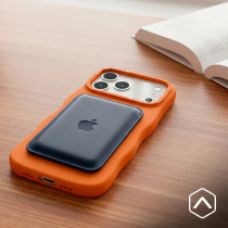 A Ref. 99053 é uma capa do tipo "oficial" com estrutura completa de 4 lados, projetada para um ajuste muito justo e uma sensação premium ao toque. Combina uma armação de silicone rígido / TPU rígido (mais firme que um silicone macio) com uma parte traseira rígida de metacrilato, oferecendo proteção sólida sem perder a estética. Seu design inclui um anel magnético integrado para carregamento e acessórios MagSafe.
